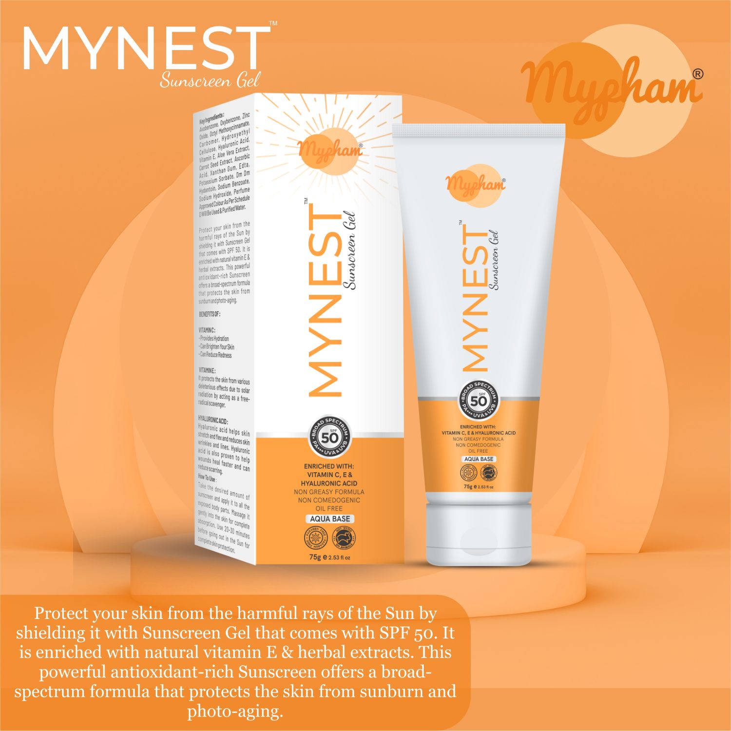 What is Mypham MYNEST Vitamin C + E SPF 50 Sunscreen Gel used for?